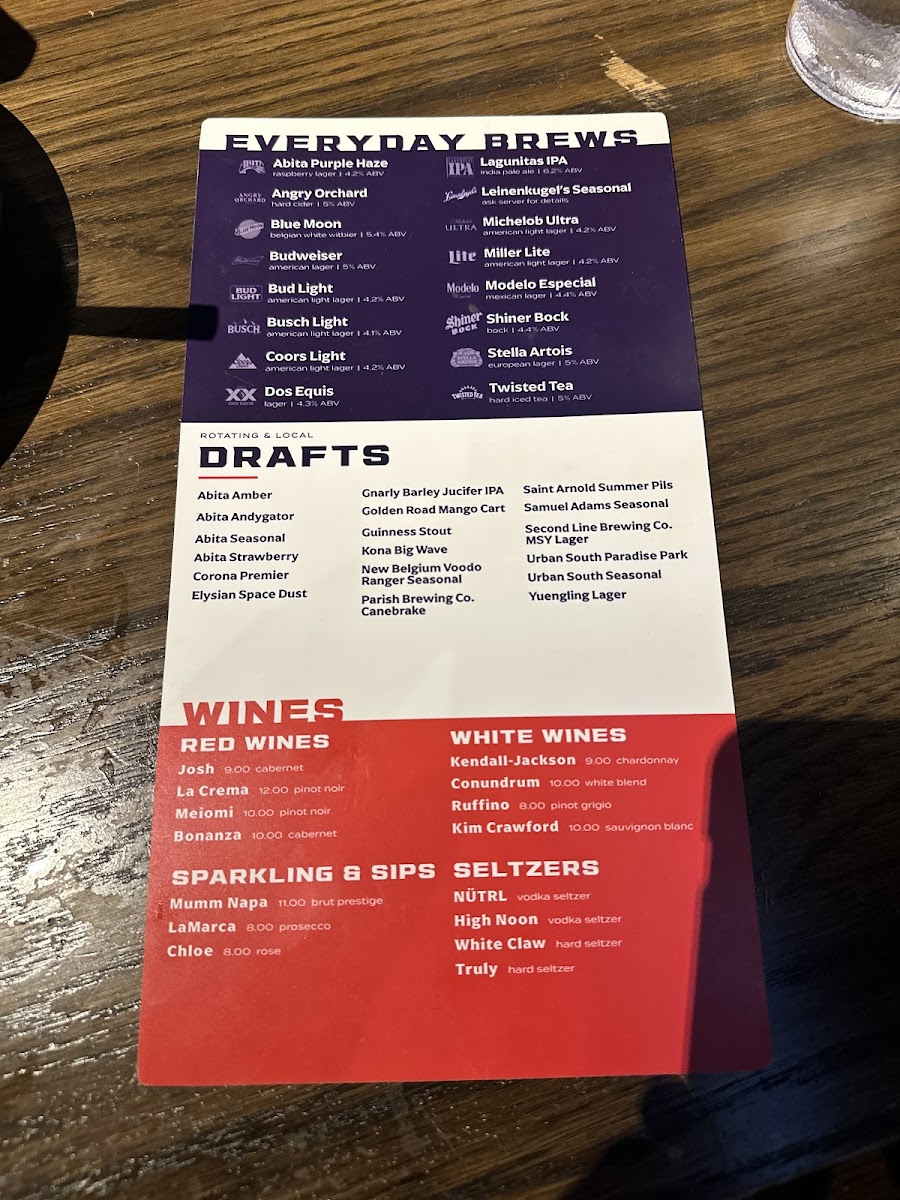 Walk-On's Sports Bistreaux - Metairie Restaurant Menu